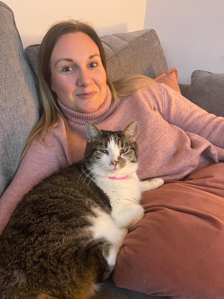 Georgie has now been living with Rachael for a few weeks and is slowly settling in with the new attention of four people. She has bonded with Rachael’s two other cats and likes to show them who is the boss! Georgie shows a lot of affection for her new family, having lost her previous owner of such a long time.